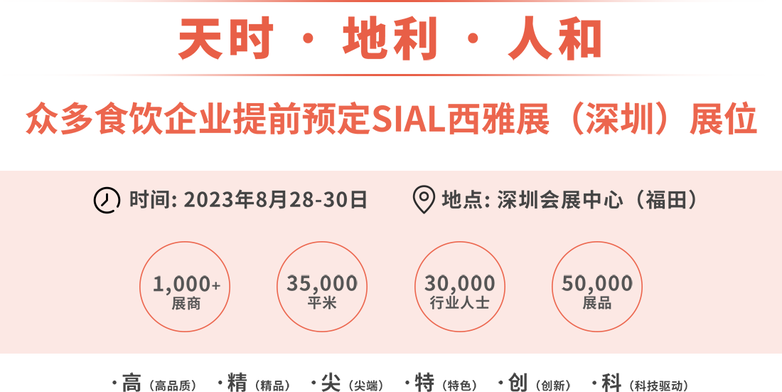 | 自SIAL西雅展(深圳)開啟展位預(yù)定后,截至到目前,已有250家國(guó)內(nèi)食飲企業(yè)預(yù)定2023年SIAL西雅展(深圳)展位,并上傳近1000個(gè)展品,意欲提前布局規(guī)劃,搶占華南地區(qū)市場(chǎng)機(jī)會(huì)。同時(shí),包括來(lái)自美國(guó),法國(guó),瑞士,德國(guó),意大利,日本,泰國(guó),越南,馬來(lái)西亞等國(guó)際展團(tuán)及國(guó)際品牌已確定參展,將在明年深度開拓中國(guó)市場(chǎng)。 |