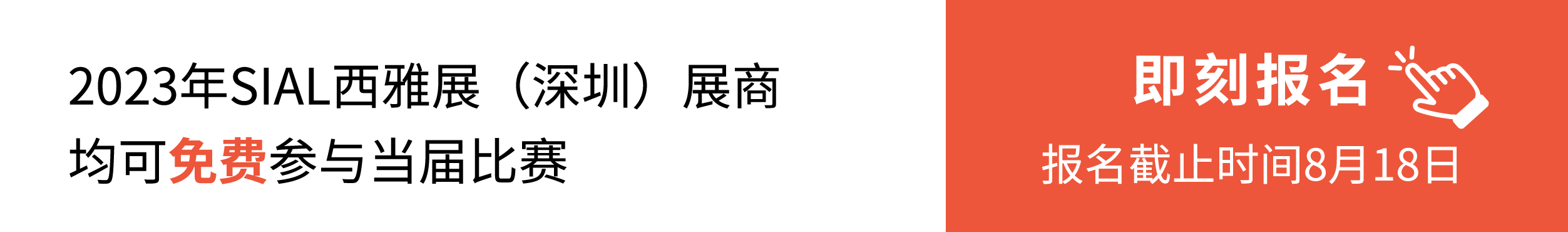 | 創(chuàng)新大賽報(bào)名進(jìn)入倒計(jì)時(shí),攻略在手 參賽無憂 2023年SIAL西雅展 (深圳) 展商 均可免費(fèi)參與當(dāng)屆比賽 報(bào)名截止時(shí)間:8月18日 |