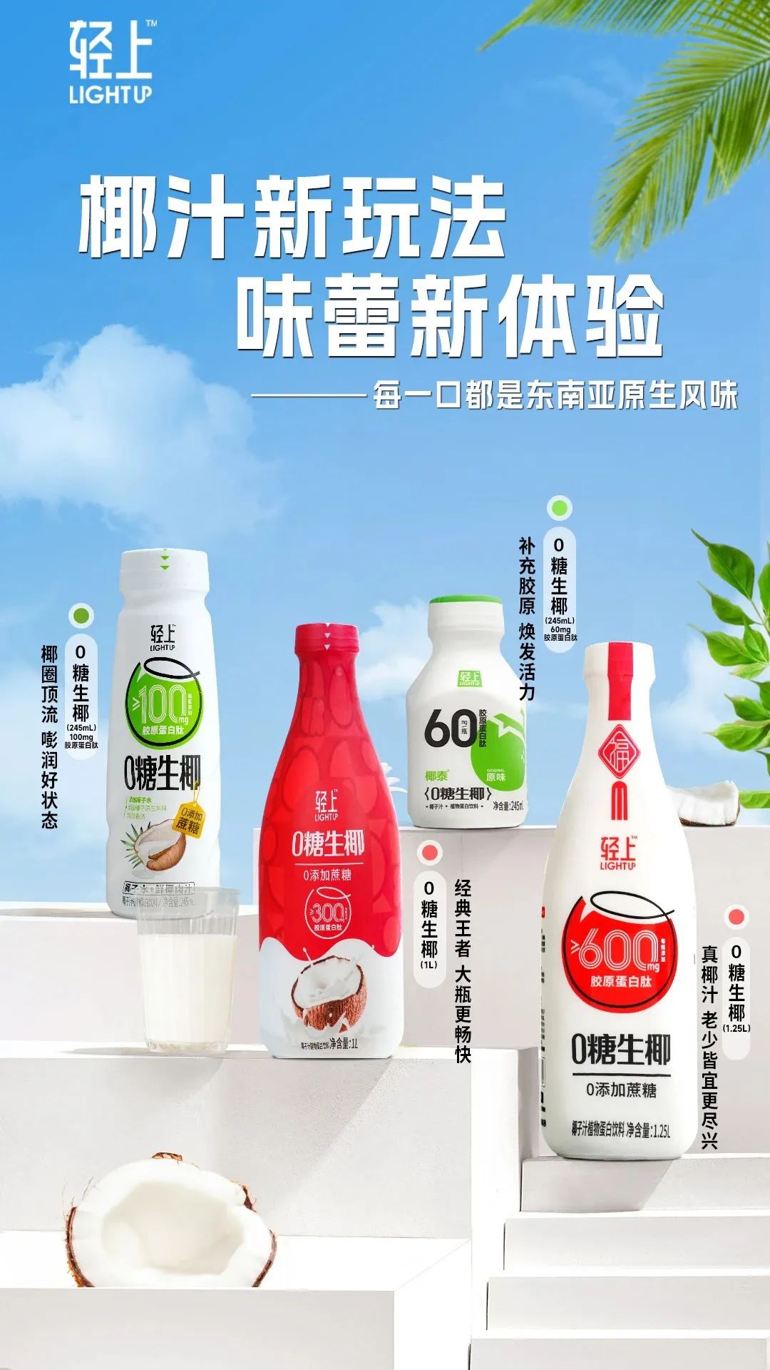 既要健康、要0糖,又要好喝、要營養(yǎng),面對更多元化的消費需求,椰泰椰汁全新推出輕上0糖生椰。據(jù)悉,新品精選東南亞進口陽光鮮椰生榨,主打“0添加蔗糖”,添加膠原蛋白肽,好喝無負擔(dān)。在容量設(shè)計上,0糖生椰有245ml、1L和1.25L多種規(guī)格,增加了在多種飲用場景的便利性和社交屬性。