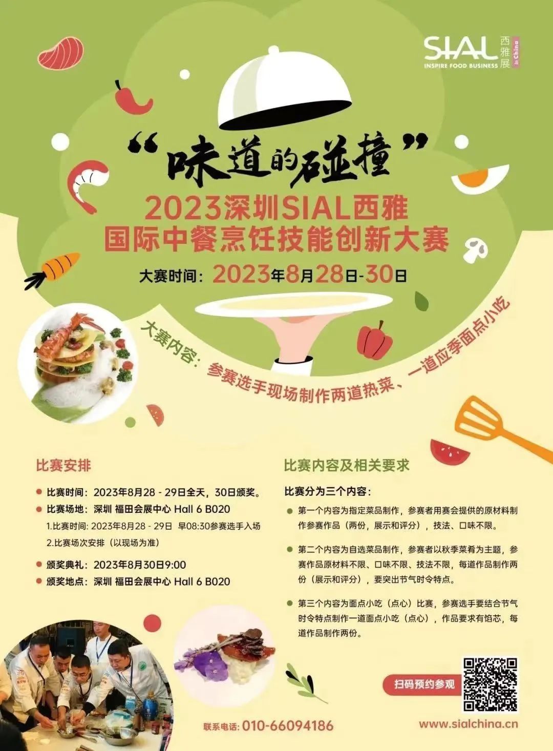 8月28日,伴隨SIAL西雅展(深圳)正式開幕,為期兩天的“味道的碰撞”-2023深圳SIAL西雅國際中餐烹飪技能創(chuàng)新大賽”(以下簡稱“中餐烹飪大賽”)將同步開鑼,廣邀天下名廚現(xiàn)場比拼中式美食廚藝,打造中式餐飲創(chuàng)新發(fā)展“風(fēng)向標(biāo)”。