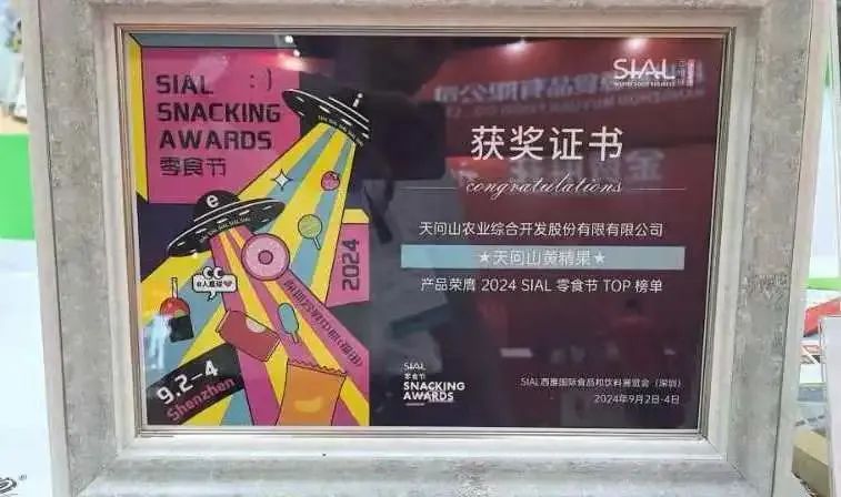 恭喜天問山生物科技股份有限公司黃精果榮膺2024 SIAL西雅國際食品展(深圳)零食節(jié) TOP榜單