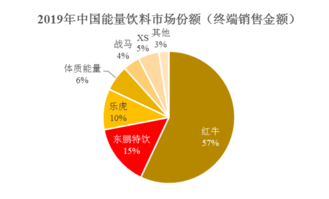 根據(jù)東鵬特飲招股說(shuō)明書(shū)的內(nèi)容,2019年?yáng)|鵬特飲在中國(guó)能量飲料中的市場(chǎng)份兒為15%,緊跟市場(chǎng)份額為57%的市場(chǎng)頭號(hào)玩家紅牛。