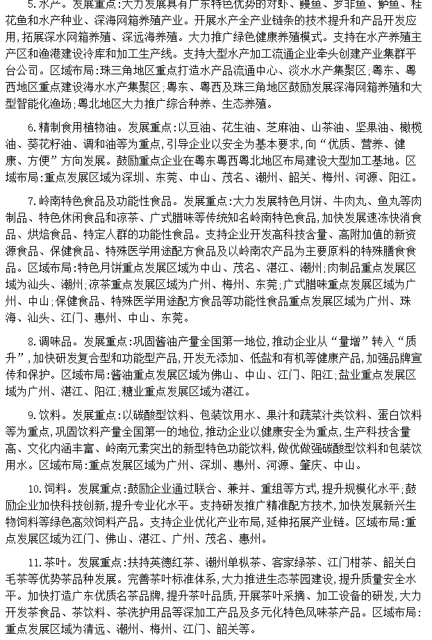 根據(jù)廣東省工業(yè)和信息化廳發(fā)布的《廣東省發(fā)展現(xiàn)代農(nóng)業(yè)與食品戰(zhàn)略性支柱產(chǎn)業(yè)集群行動(dòng)計(jì)劃(2021—2025年)》,飲料與糧食、蔬菜、嶺南水果、畜禽、水產(chǎn)、嶺南特色食品及功能性食品、茶葉等一同成為重點(diǎn)優(yōu)化的子產(chǎn)業(yè)集群: