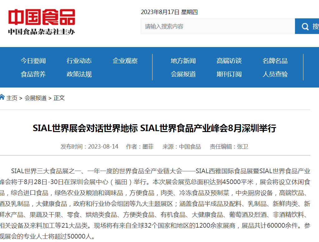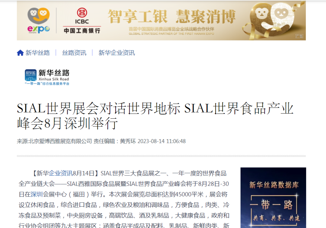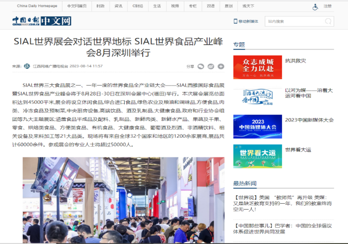 人民網(wǎng)等百家主流媒體競(jìng)相報(bào)道 SIAL世界食品產(chǎn)業(yè)峰會(huì)強(qiáng)勢(shì)出圈