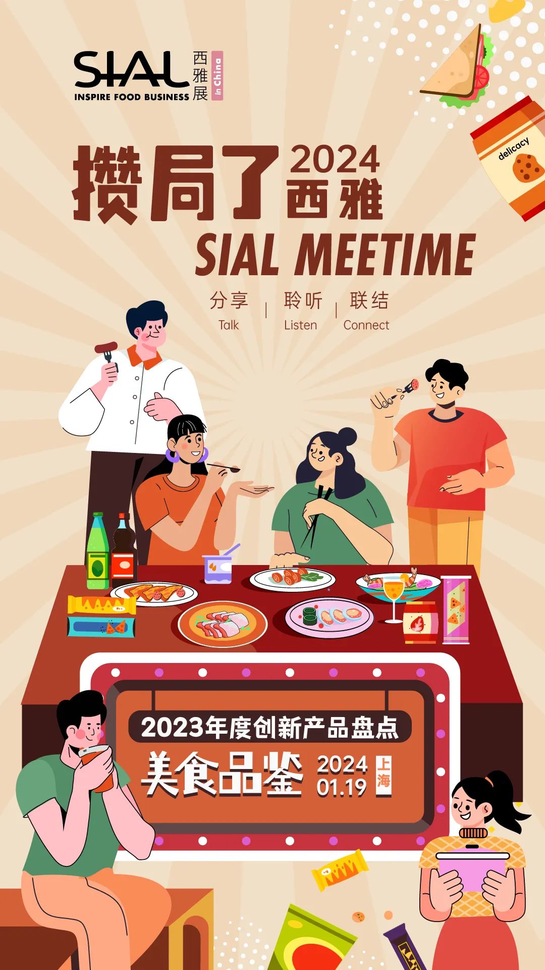 本期<SIAL Meetime 攢局了!西雅>線下沙龍活動將邀請食飲行業(yè)生產(chǎn)商、零售商、行業(yè)專家等,從各自不同的角度進行“2023年度創(chuàng)新產(chǎn)品大盤點”,分析熱門品類及產(chǎn)品發(fā)展特點,洞悉前沿食飲創(chuàng)新趨勢,為食飲企業(yè)在2024年開拓商機帶來有效思路!屆時,現(xiàn)場還將準(zhǔn)備多款創(chuàng)新產(chǎn)品供各位品嘗,為大家未來的產(chǎn)品研發(fā)創(chuàng)新帶來新靈感!